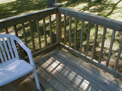 The railings are a simple and sturdy design, using 4 by 4 posts, with 2 by 4's and 2 by 2 ballisters for the individual sections of railing. A 5/4 by 4 board dresses the top of each section.