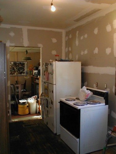 The view from the opposite end of the kitchen. The drywall still needs another coat of joint compound and painting