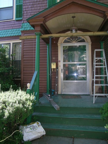 | Next picture Now that we know where things are, we can actually get started on the work. The first thing is to support the roof and raise it a little bit to take the load off of the columns. We're still hoping that the repair might be limited to the left side, so we're only lifting the left side for now. |